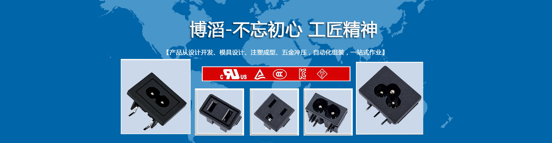 廣東博滔電子有限公司成立于 2018年,公司主要研發和生產各種器具輸入插座、器具耦合器等各種電源插座,產品廣泛應用于電腦及周邊、家用電器、工業設備、儀器儀表、通訊設備、智能家居等領域。 我司產品均通過美國UL和CUL 、德國TUV 、 韓國KC 、日本PSE、中國CCC 等認證。所有產品均能通過RoHs和Reach環保檢測?蛻糁饕植荚谥袊箨憽⑴_灣、日本、韓國、東南亞、北美及歐洲地區,多年來公司產品得到世界各地客戶的肯定和信賴……